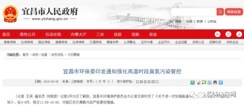 根據宜昌市環保局印發的《關于進一步加強高溫月份臭氧污染臨時管控的通知》顯示,城區將實行臭氧污染嚴格管控措施。5-9月每日11:00-18:00,城區工業企業涉揮發性有機物排放的工段(車間)停產,確因生產工藝等原因無法停產的實行錯峰生產(限產50%)。