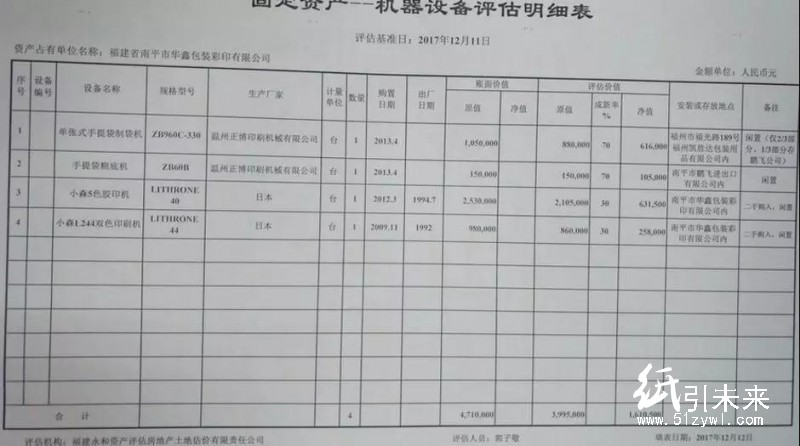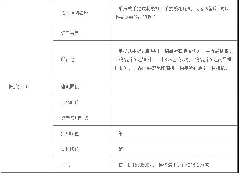 拍賣標的:福建省南平市華鑫包裝彩印有限公司機器設備(兩臺膠印、印刷設備)