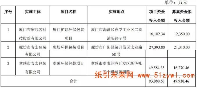 (一)本次擬部分變更實施主體和實施地點募投項目概況:公司上述非公開發行股票募投項目中的“廈門擴建環保包裝項目”原計劃由廈門總部實施,實施地點位于廈門市海滄區東孚工業區二期浦頭路9號,項目建設生產線主要用來生產彩色包裝箱、彩色包裝紙盒及環保紙袋,項目擬投入募集資金金額12,350萬元。