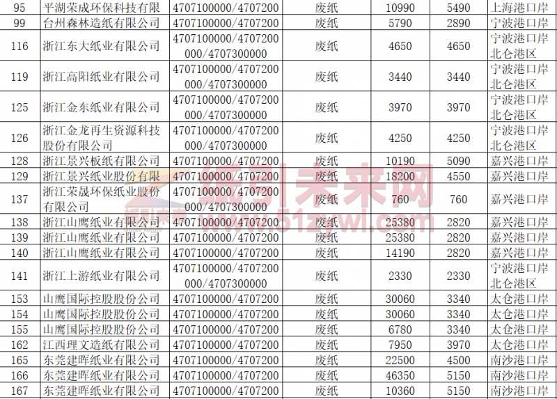 4月10日,固廢中心發(fā)布2020年第五批限制進口許可證,此次批文核定進口量為1171500噸,核定進口企業(yè)37家。