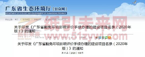 關(guān)于印發(fā)《廣東省豁免環(huán)境影響評價手續(xù)辦理的建設(shè)項目名錄(2020年版)》的通知