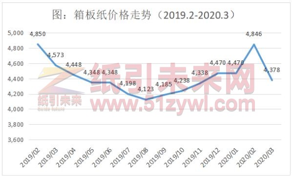 一季度國內包裝紙平均價格約為4612元/噸,同比下降3.8%,3月跌幅較大,較2月下跌9.8%。
