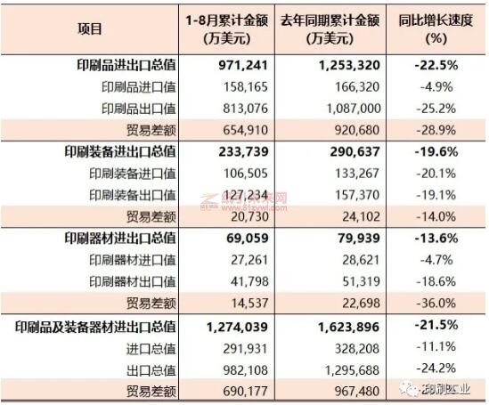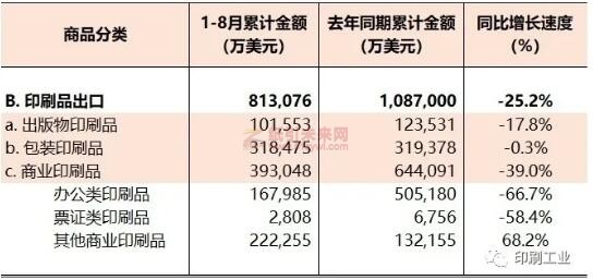 今年1-8月印刷品、印刷裝備、印刷器材進出口簡報