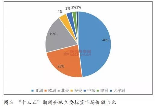 “十三五”期間,亞洲始終占據著標簽印刷市場的主導地位,自2015年以來年增長率為7%,其后的兩大市場是歐洲和北美,這三大區域占據了90%的全球標簽市場份額。