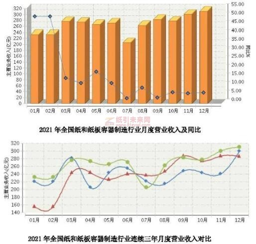 在營收及利潤方面,2021年,我國紙和紙板容器行業規模以上企業累計完成營收3192.03億元,同比增長13.56%,增速比去年同期提高了16.09個百分點;