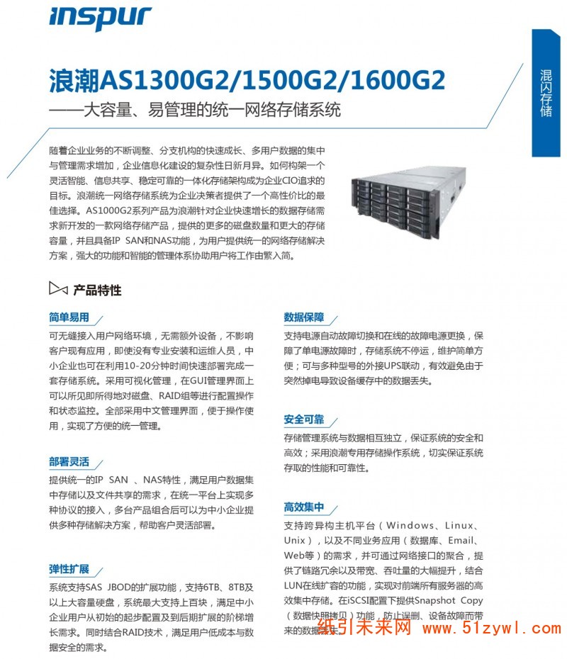 浪潮(INSPUR)AS1300G2(NAS+IP SAN存儲)存儲服務器主機套裝-4T1個控制器/1508主板/2個萬兆口 TYP058/8GB緩存/4TB硬盤